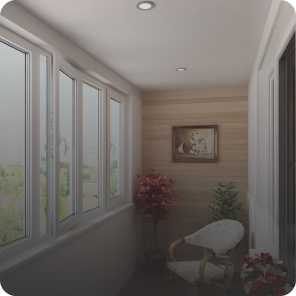 Профиль из ПВХ системы с поворотными створками. Такое остекление создает комфортную среду на балконе в любое время года.